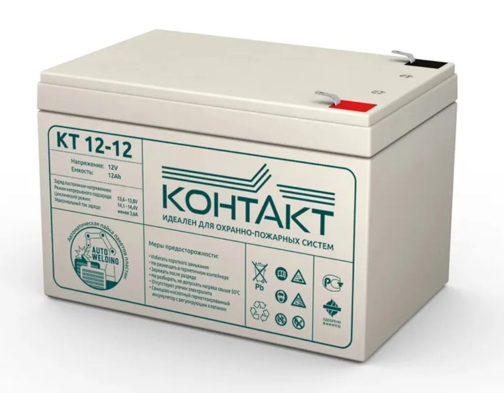 Бюджетная свинцово-кислотная герметизированная аккумуляторная батарея Контакт КТ 12-12, с напряжением 12 В, емкостью 12 Ач. Технология изготовления AGM с абсорбированным электролитом в стекловолоконном сепараторе, идеальны для использования в охранно-противопожарных, а также мелком слаботочном оборудовании (фонари, ККМ, весы). Необслуживаемая VRLA батарея производителя Контакт оптимальна для использования как в циклическом, так и в буферном режиме, но буферный режим эксплуатации более предпочтителен. Расчетный срок службы 3-5 лет.