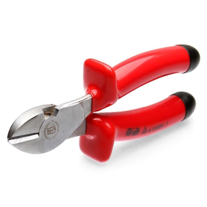 Для работ под напряжением до 1000 В. Материал рукояток – двухслойная диэлектрическая пластизоль. Внутренний слой (сигнальный) – желтый (светло-красный), внешний слой – красный. Режущие кромки дополнительно закалены токами высокой частоты HRC 58-62. Двухсторонняя диагональная заточка лезвий. Резка мягкой проволоки до 4 мм и твердой проволоки до 2 мм. Резка провода диаметром до 9 мм.