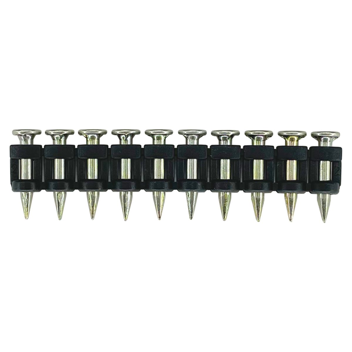 Гвозди по бетону, металлу, кирпичу Toua CN подходят для большинства газовых, аккумуляторных и пневматических монтажных пистолетов. Подходят для монтажа к кирпичу, бетону средней и высокой плотности, а также к массивному (более 6 мм) и немассивному металлу – толщиной от 3 до 6 мм. Широко используются в общестроительном монтаже: монтаж фанеры к бетону, монтаж тонких металлических и алюминиевых направляющих к бетону и кирпичу, монтаж профлиста к бетону, кирпичу и металлическим балкам. Так же применяются для пристрелки направляющих ГКЛ, штукатурной сетки, электромонтажных работ, монтажа натяжных потолков и инженерных систем. Длина: 17 мм. Сечение: 2.7 мм. Упаковка: 1000 шт. Покрытие: Гальванизация.