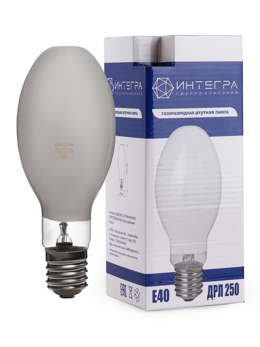 Ртутная лампа ИНТЕГРА универсального положения горения, предназначена для использования в открытых и закрытых светильниках для общего уличного, наружного и промышленного освещения, основание колбы резьбовое, исключено отслоение колбы от цоколя.