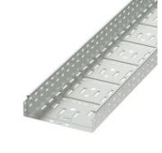 Перфорированные листовые лотки ДКС применяются для прокладки кабеля как в помещении, так и на открытом воздухе. Лотки отличаются высокой несущей способностью - подформовка, производимая при производстве этой продукции, создает дополнительное ребро жесткости, что увеличивает несущую способность системы до 54%. Перфорация сокращает вес конструкции. В лотках имеются отверстия для отвода кабеля диаметром 11 мм, 17 мм, 21 мм. Степень пыле- и влагозащиты перфорированных лотков - IP10 при использовании крышек, входящих в состав системы. Метод соединения ''мама-папа'' применяемый для системы, существенно сокращает время монтажа и создает непрерывный контур. Конструктив листовых лотков ДКС предупреждает повреждение кабеля при прокладке. Толщина стали - 0.7 мм, высота лотка - 50 мм, ширина - 200 мм, длина - 3000 мм. Полезное сечение - 9800 мм. Исполнение - ''сталь, оцинкованная по методу Сендзимира''.