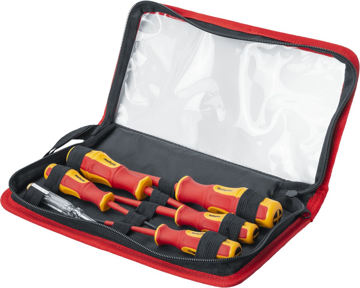 Наборы диэлектрических отверток Navigator NHT-Оtd03-H6/Н8 предназначены для профессиональных работ в электрических сетях и силовых токопроводящих точках, находящихся под напряжением до 1000 В. Ударопрочная двухкомпонентная рукоятка с шестигранным сечением обеспечивает эффективную передачу усилия. Наконечники изготовлены из высоколегированной стали V5, подвергнуты многочасовому ступенчатому закаливанию. Максимальный крутящий момент на излом превышает немецкий стандарт DIN в два раза.