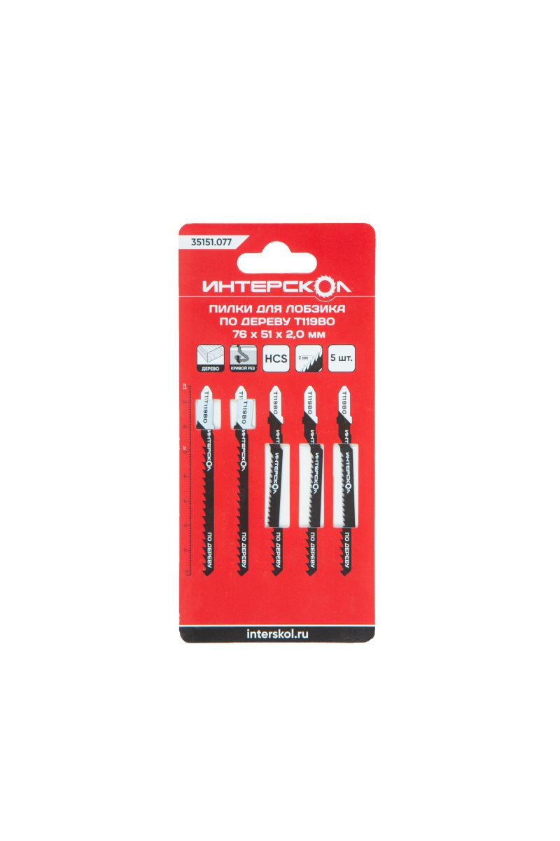 Пилки для лобзика по дереву T119BO 76х51х2,0 мм, криволинейный рез