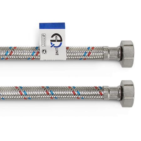 Гибкая подводка для воды AQUALINE предназначена для подсоединения бытовых и сантехнических приборов в системах горячего и холодного хозяйственно-питьевого водоснабжения. Внутренняя трубка гибкого шланга изготовлена из этилен-пропиленового каучука СКЭП (EPDM), покрытого оплеткой из восьми стальных нитей (нержавеющая сталь 08Х18Н10 (AISI 304)). Концевая арматура (гайка и штуцер) выполнена из никелированной латуни ЛС59-2 (CW617N), а соединительный штуцер – из латуни ЛС59-3 (CW614N). Благодаря использованию качественных материалов гибкая подводка AQUALINE отличается надежностью и долговечностью.