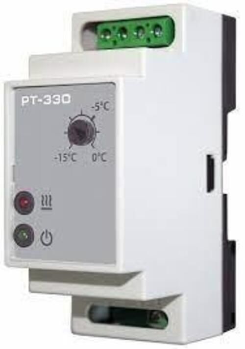 Регулятор температуры электронный РТ-330 предназначен для управления антиобледенительными системами в заданном регулируемом диапазоне с использованием выносного датчика температуры непосредственно с помощью встроенного реле или через управляемые пускатели. Монтируется в шкафу управления на стандартную DIN-рейку.