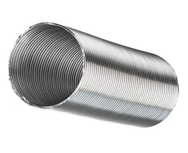 Воздуховоды спирально-навивные. Тип соединения ленты - тройной замок. Рабочая температура - от -30 до +300 градусов С. Максимальная длина в растянутом виде - 3 м. Материал - алюминиевая фольга.